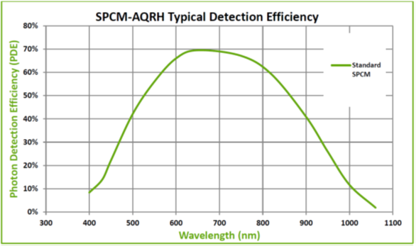 Jedes eintreffende Photon erzeugt mit Hilfe einer gekühlten Si-Avanlanche-Photodiode (APD) einen TTL-Puls am Ausgang. Das SPCM-AQRH Einzelphotonenzählmodul von Excelitas detektiert Einzelphotonen im Wellenlängenbereich von 400 nm bis 1064 nm mit höchster Photonendetektionseffizienz von mehr als 70%, bei gleichzeitig niedriger Dunkelzählrate bis zu 25 cps. Für jedes detektierte Photon wird ein TTL-Puls am BNC-Anschluss an der Rückseite des Moduls erzeugt. Das Modul wird optional mit FC-Faseranschluss, C-mount oder Tube Cage Mount Bracket/Adapter ausgeliefert. Zudem gibt es im Infraroten optimierte Module und für bessere Zeitauflöung steht die TR-Serie zur Verfügung.